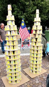 When we rocked up, dragging the kids past the bouncy castle, a stylised martial arts demonstration was just starting near the twin Petronas towers made of Mamee noodles (one of the most visible sponsors; towers pictured right).
